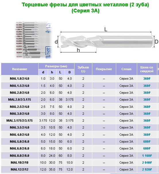 Твёрдосплавные фрезы для цветных металлов (2 зуба) - Продам в Москве