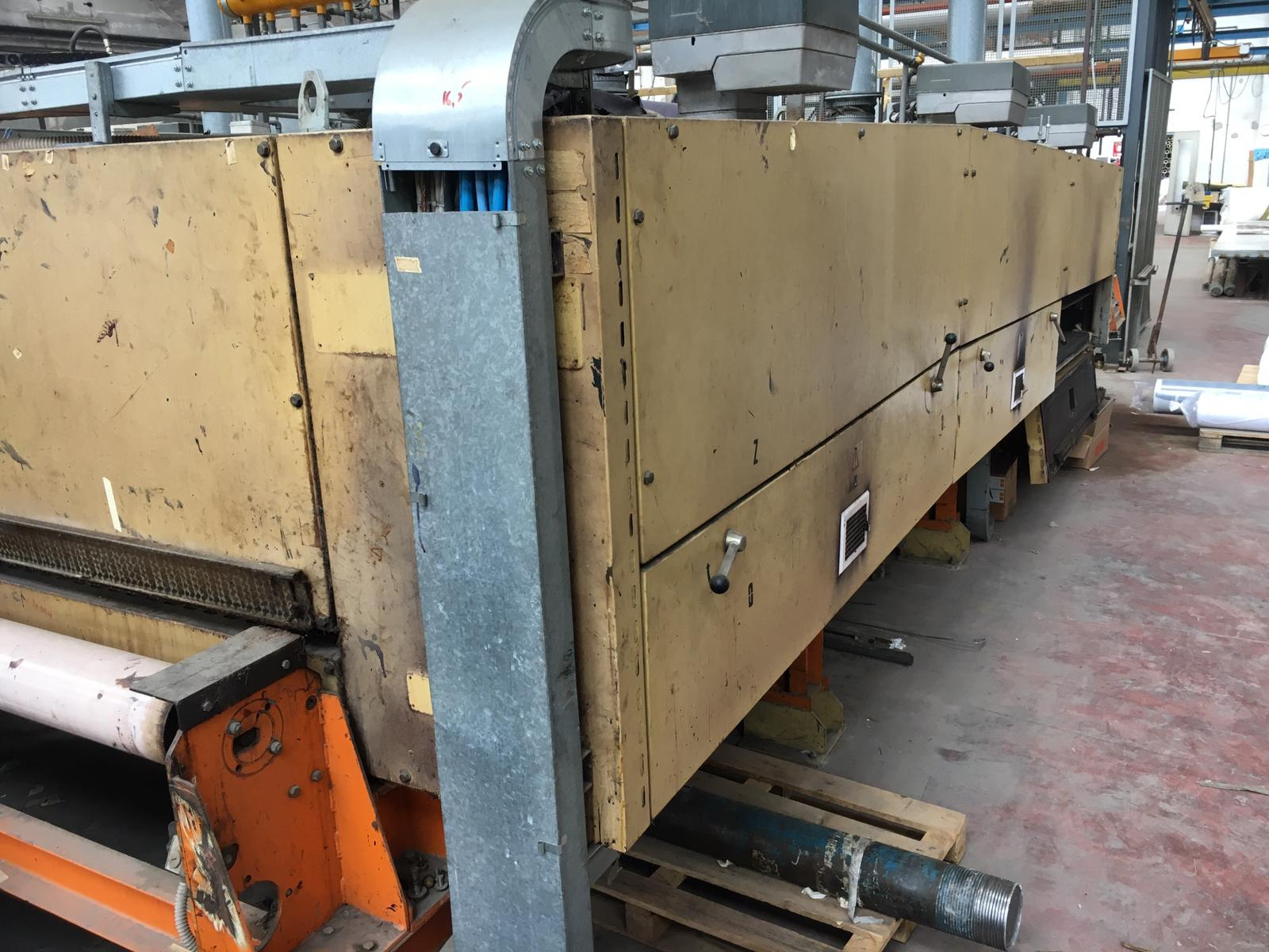 N 1 JOHANNES ZIMMER rotary printing machine for printing on paper, type R 90/25, year 1991. Working width from 1600mm to 3200mm, 8 colours, repeat from 64 to 102, steel roll with magnet. Sets of squeegees for 1600mm and 3200mm. Dryer 1 passage, gas heated. Abasit blanket total length 16 mt, print length 6/7 mt. Colombo rolls washing, Colombo squeegees washing. JAS colours kitchen with thickeners mixer for 1500kg, 8 boxes for paste 300kg each, structure with balance, table for drum, cans washing. To print on fabrics the machine should be modified adding an adhesive spreading device and blanket washing. Lawer rotating storage.