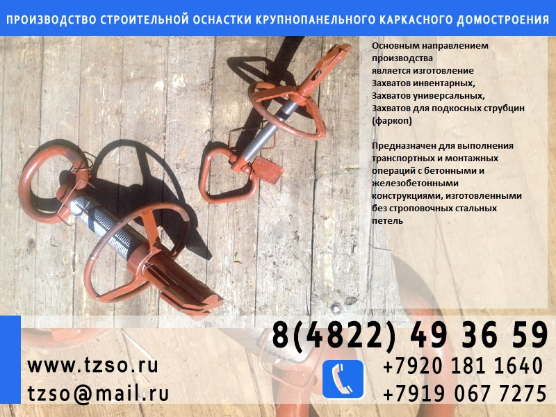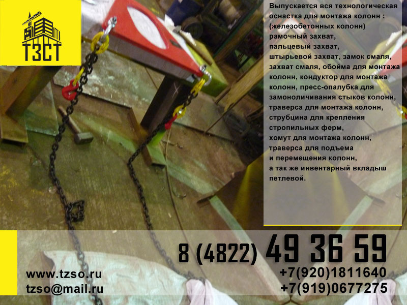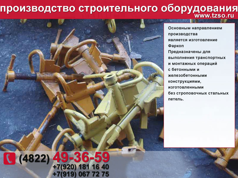 (подкосы, струбцины, площадки навесные и выносные, тара для раствора, рукава, лотки, воронка для бадьи, различное навесное грузозахватное оборудование.