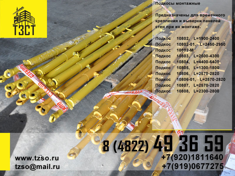 Подкосы предназначены для временного крепления и выверки панелей стен и железобетонных колонн при их монтаже.