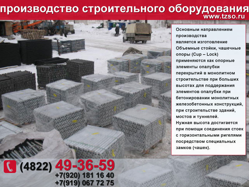 (подкосы, струбцины, площадки навесные и выносные, тара для раствора, рукава, лотки, воронка для бадьи, различное навесное грузозахватное оборудование.