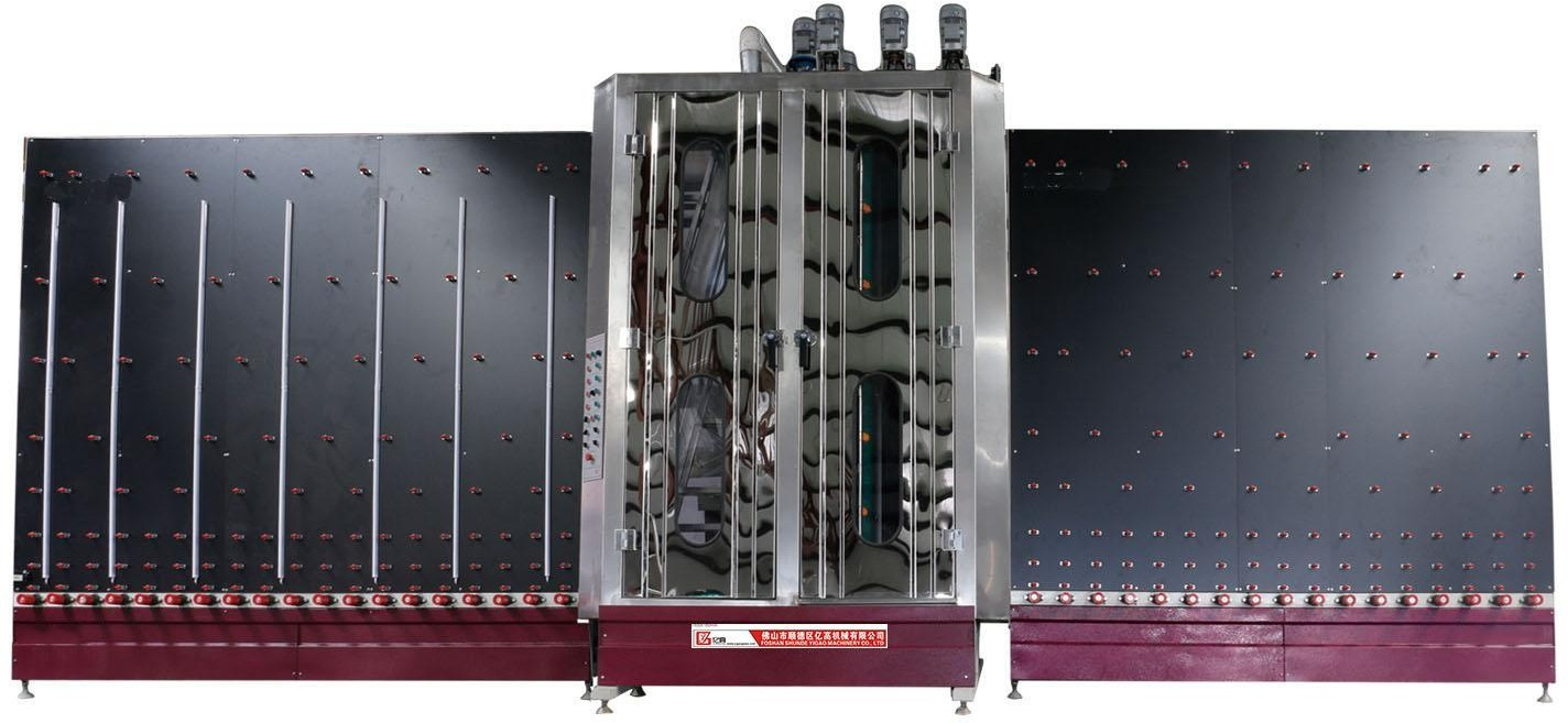 2. Три пары щеток диаметром 150 мм с четырьмя контурами для омывания обеспечивают скорость мойки 10~12м/мин. Первая пара жестких щеток может подниматься пневмоцилиндром, возможна мойка LOW-E стекла.