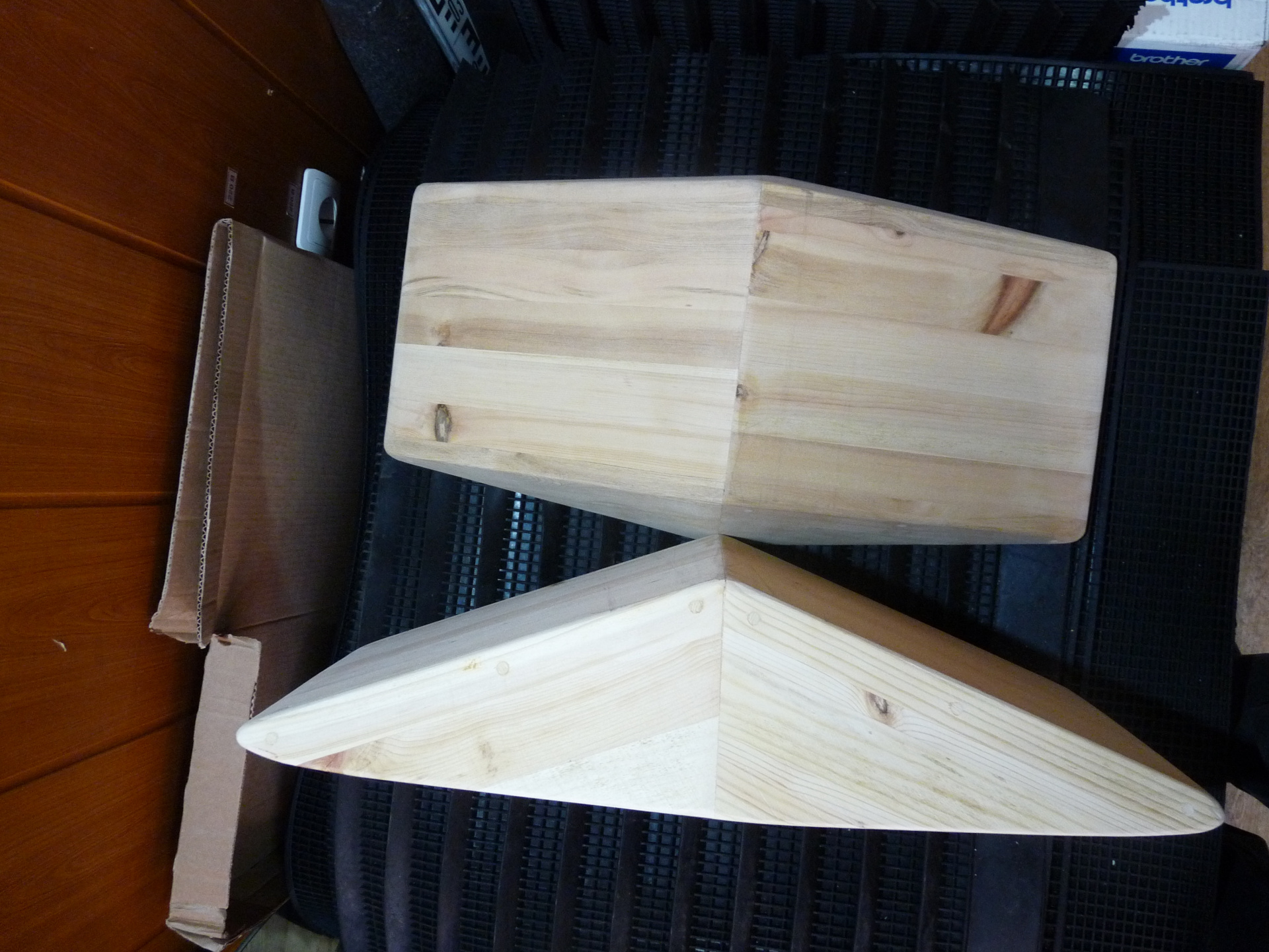 5). Кедр клееный (качественно, укреплены саморезами, сверху закрыты деревянными чёпиком) - длина 58 см. х ширина 30,5 см. (по верху), 23 см. (по низу) х глубина 11 см, цена 3 000 р. В наличии 6 шт.