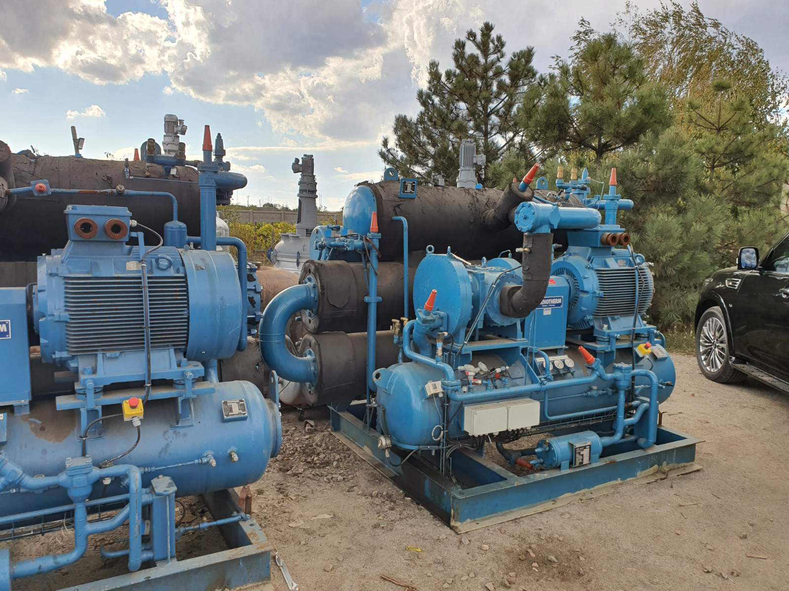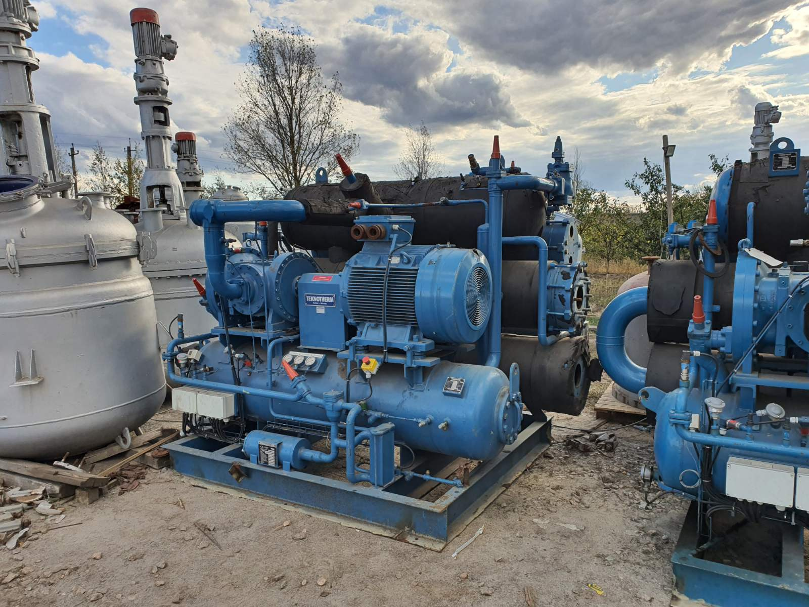 Компрессор с чиллером Teknotherm и Mycom 25 Бар, 370 ДМЗ. Не бывший эксплуатации компрессорный стенд Teknoherm тип YDR-D50-200 с чиллером Teknotherm и винтовым компрессором Mycom тип OFC-50. Компрессор подходит для всех типов хладогентов. Агрегат состоит из компрессора , двигателя , масляного насоса, масляного фильтра, всасывающего фильтра, обратных клапанов и т.д. Винтовой компрессор производства Mycom с двумя роторами изготовленный из специальной кованной стали, смонтирован в корпусе из высококачественного чугуна. Основные параметры стенда. Расчетное давление 25 Бар. Расчетная температура 100 градусов С Обьем 370 дм3.