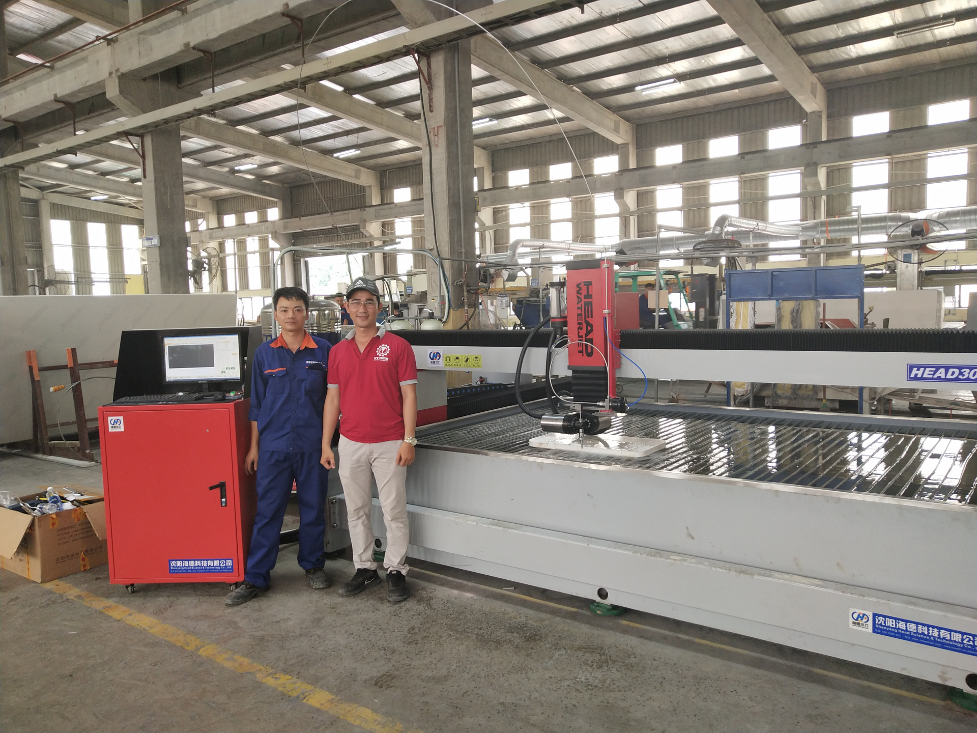 HEAD Waterjet AB 5-осей может быть расчленена на угол 8 градусов, широко используется в промышленности керамического каменного материала. Уменьшить зазор между обрабатываемыми изделиями на поверхности, можно непосредственно связать и таким образом снизить себестоимость производства. Многие клиенты в области цветочных орнаметов используют для резки HEAD Waterjet AB 5-осей. Если вы работаете в одной и той же отрасли, мы настоятельно рекомендуем Вам использовать эту систему.