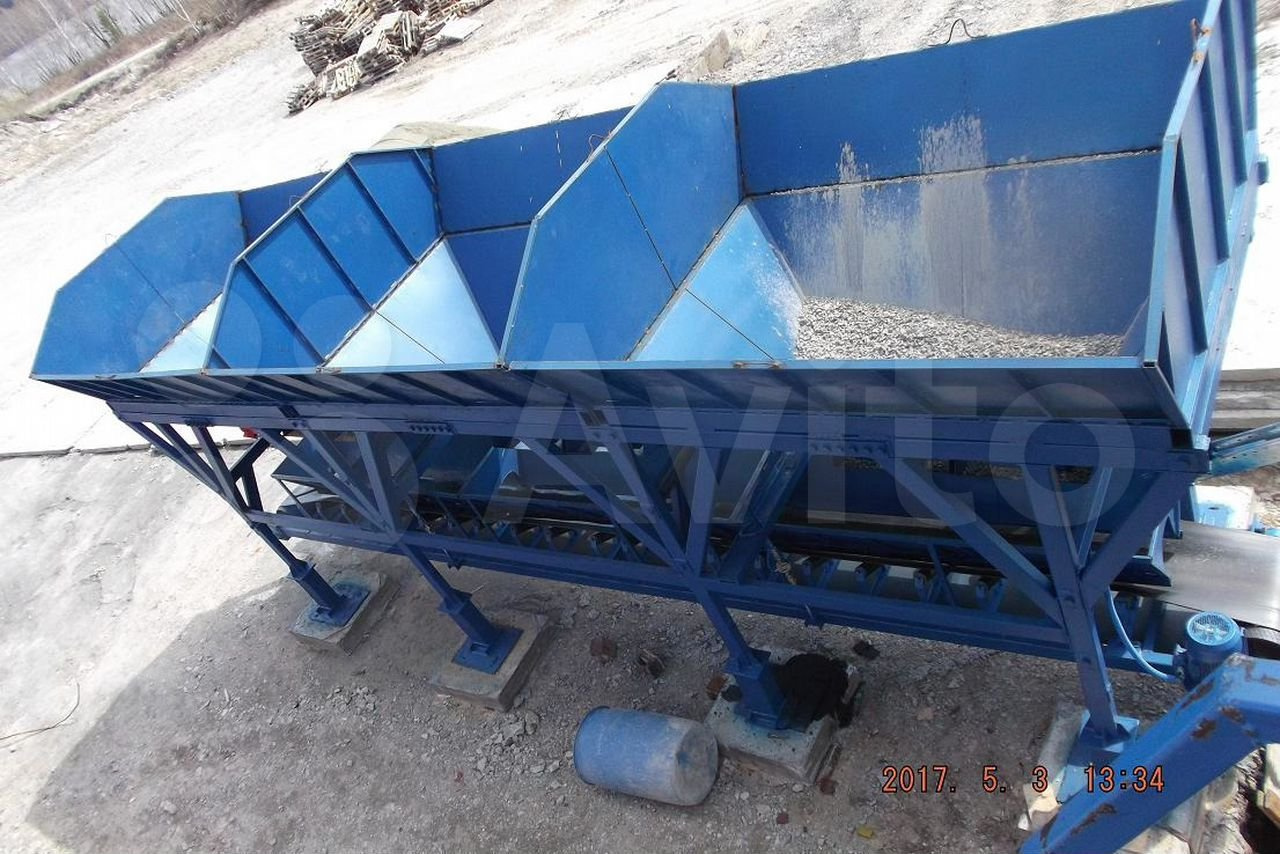 4. Система взвешивания и дозирования инертных материалов состоит из 3 бункеров для инертных материалов, объемом 10 м3 каждый, разборной рамы, конвейера для взвешивания и транспортировки инертных материалов (щирина ленты 600 мм), пневматических цилиндров, пневматических вибраторов (2 шт).