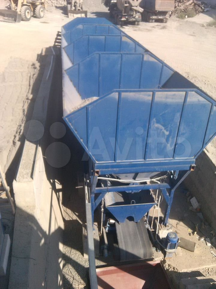 4. Система взвешивания и дозирования инертных материалов состоит из 3 бункеров для инертных материалов, объемом 20 м3 каждый, разборной рамы, конвейера для взвешивания и транспортировки инертных материалов (щирина ленты 800 мм), пневматических цилиндров, вибраторов (2 шт).