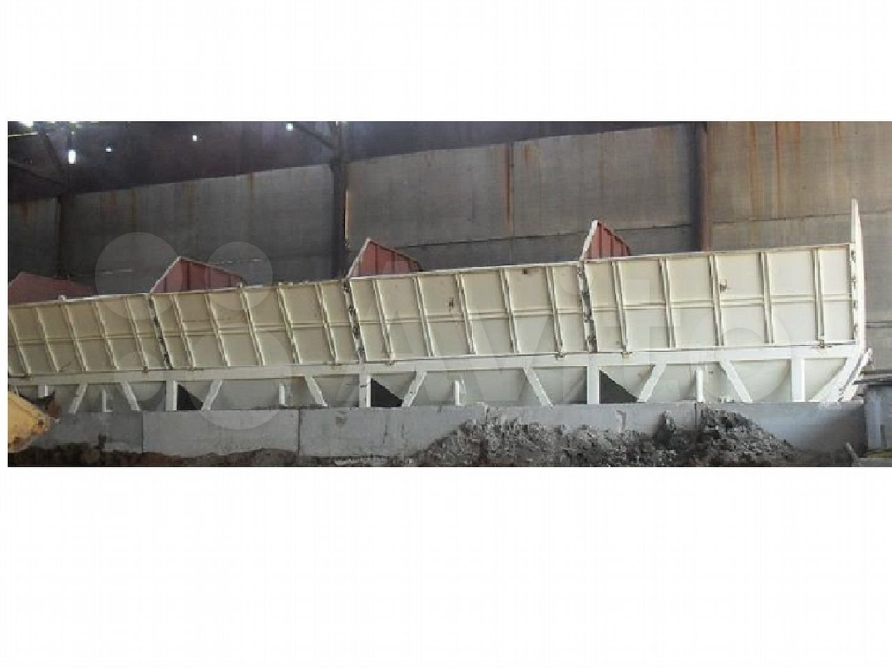 4. Система взвешивания и дозирования инертных материалов состоит из 3 бункеров для инертных материалов, объемом 20 м3 каждый, рамы, конвейера для взвешивания и транспортировки инертных материалов (ширина ленты 1000 мм), пневматических цилиндров, вибраторов (2 шт).