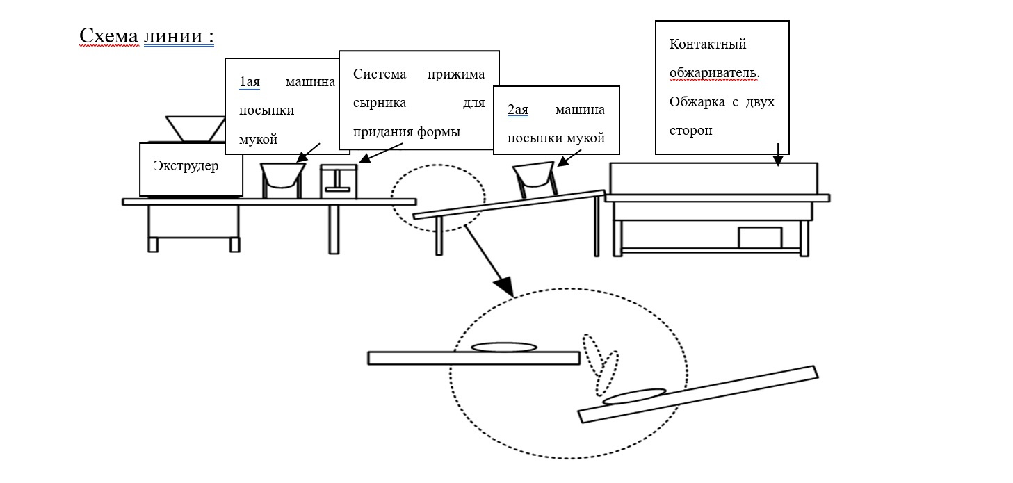 1. Формовочная машина-экструдер с системой прижима для придания продукту нужной формы.