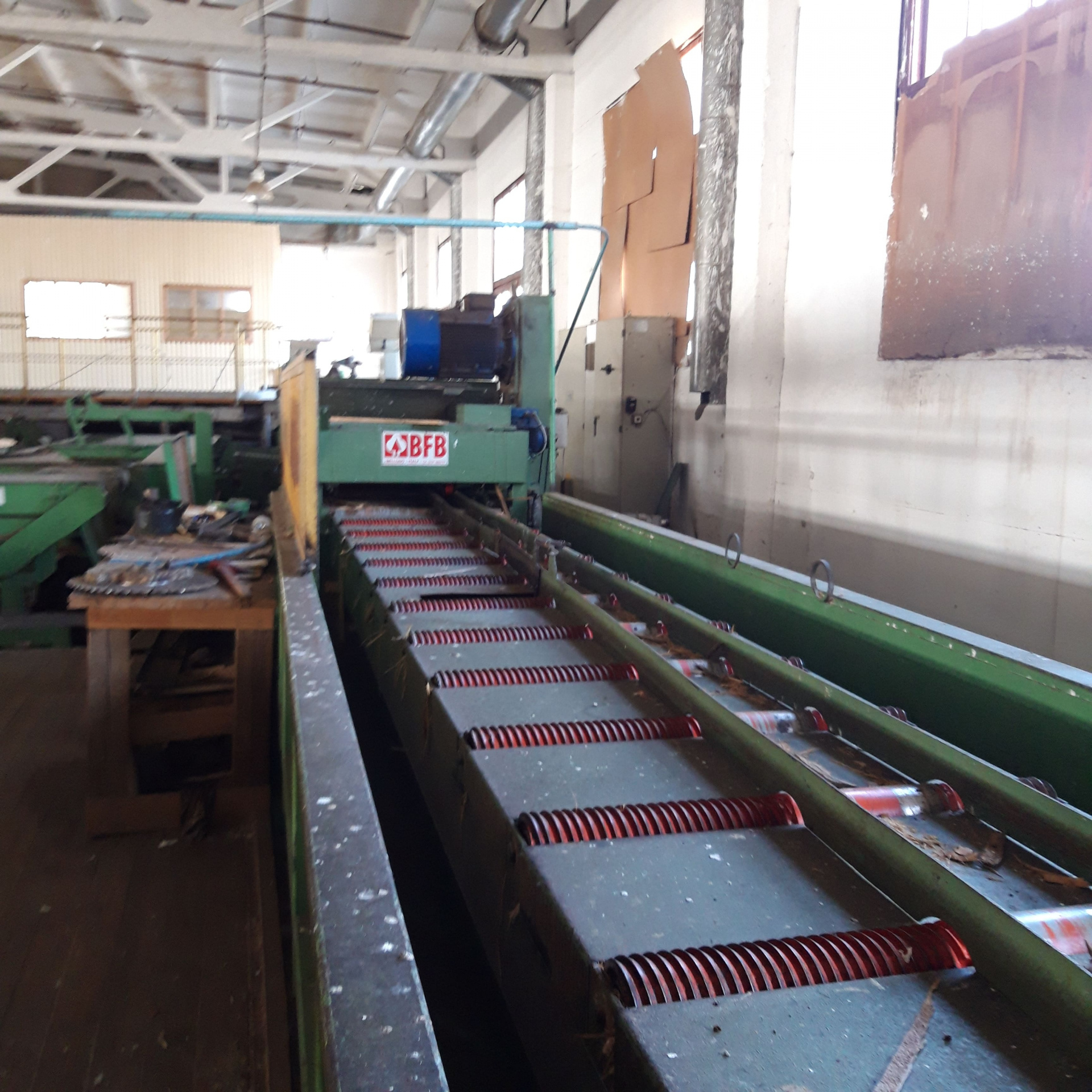 Итальянская лесопильная линия с головным двухголовым ленточнопильным узлом.