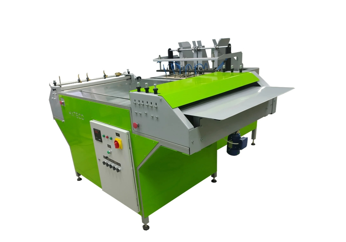 - Машина оснащается системой проклейки горячим клеем с регулировкой температуры;