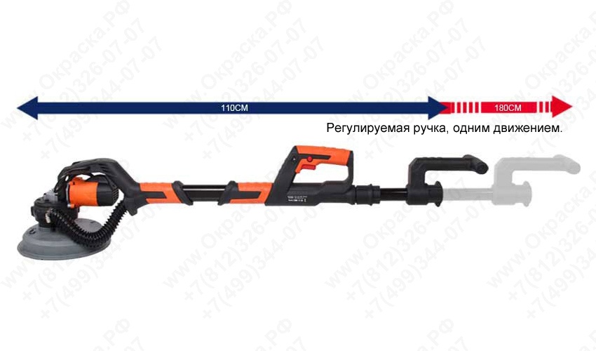 Шлифовальная машинка с телескопической ручкой предназначена для шлифовки и зачистки стен и потолков с покрытием из гипрока или штукатурки, финишной обработки поверхности под покраску, очистки образующихся на полах осаждений, снятия клея и обветшалой штукатурки, удаления остатков обоев.