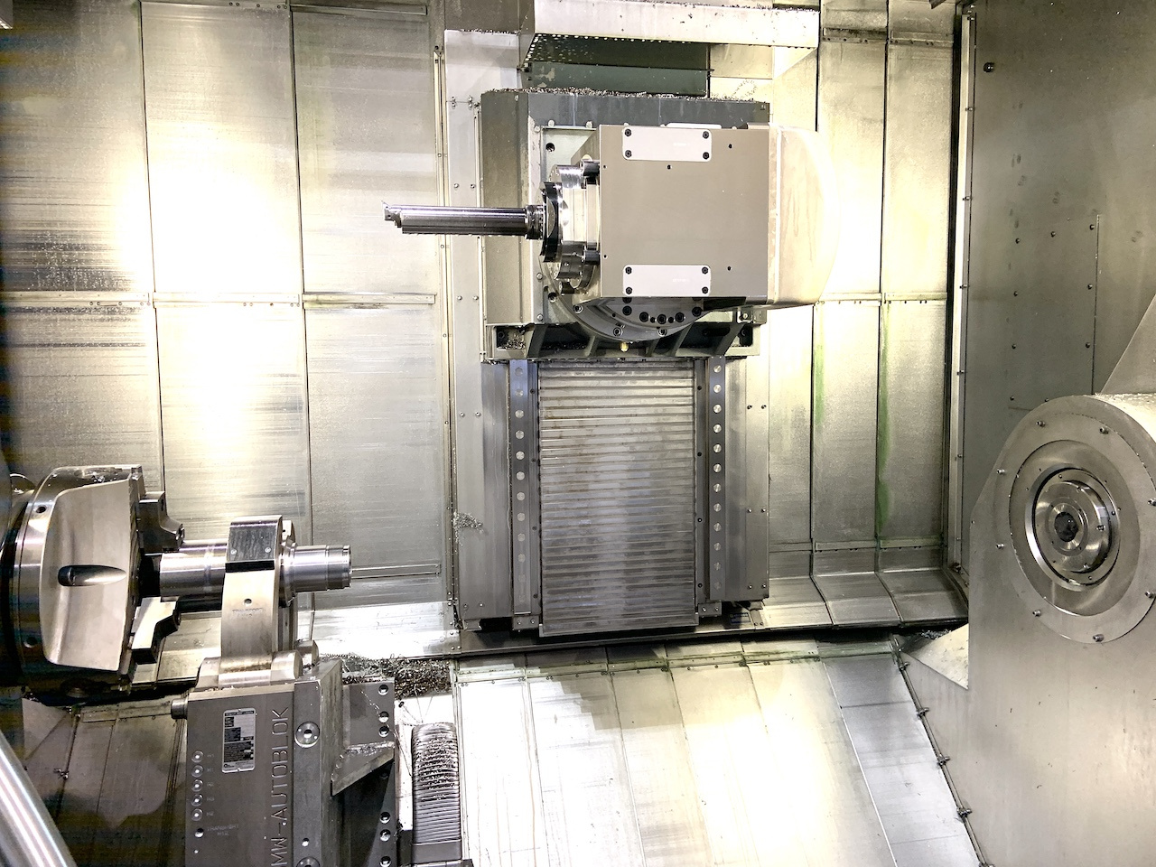 • Servodriven hydraulic steady rest type SMW SR 5.1, (85 to 350 mmØ). Automatic up/down movement.