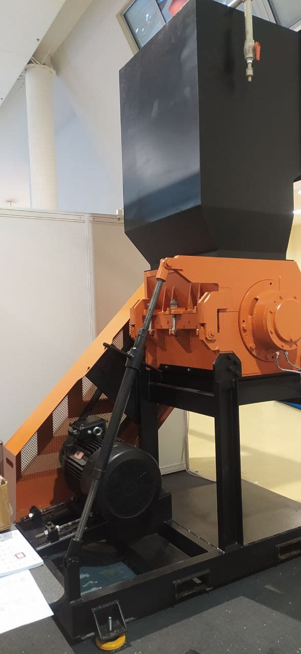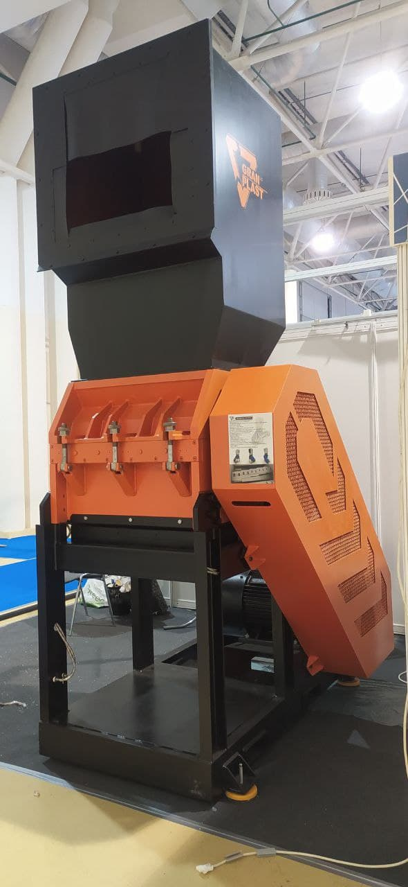 Предназначен для измельчения пленочных и тонкостенных материалов, (биг-бэги, пленки, ПЭТ бутылка, ящики, канистры, литники, корпуса и др.). Размер получаемых фракций определяется диаметром отверстий в решетке, расположенной под ротором дробилки. По желанию заказчика возможно изготовление фракционной решетки с отверстиями меньшего или большего диаметра.В бункер загрузки загружается сырье в виде отходов полимерных материалов. В корпусе ротора происходит их дробление между вращающимися ножами ротора и стационарными ножами, а также отмывка сырья. Далее измельчённое сырьё проходит через отверстия решётки и попадает в бункер выгрузки.