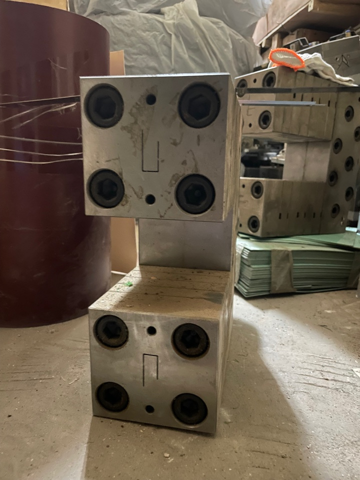 Фильеры новые: панель 250*10, вагонка в 2 ручья 100*10, Стартовый 2 ручья, соединительный 2 ручья, внутренний угол 2 ручья, внешний угол 2 ручья, F-одразный 60 мм 2 ручья, плинтус потолочный 2 ручья, подоконник 300 мм с одним капиносом. В комплект входит: фильера, коллибратор, ванна охлаждения.