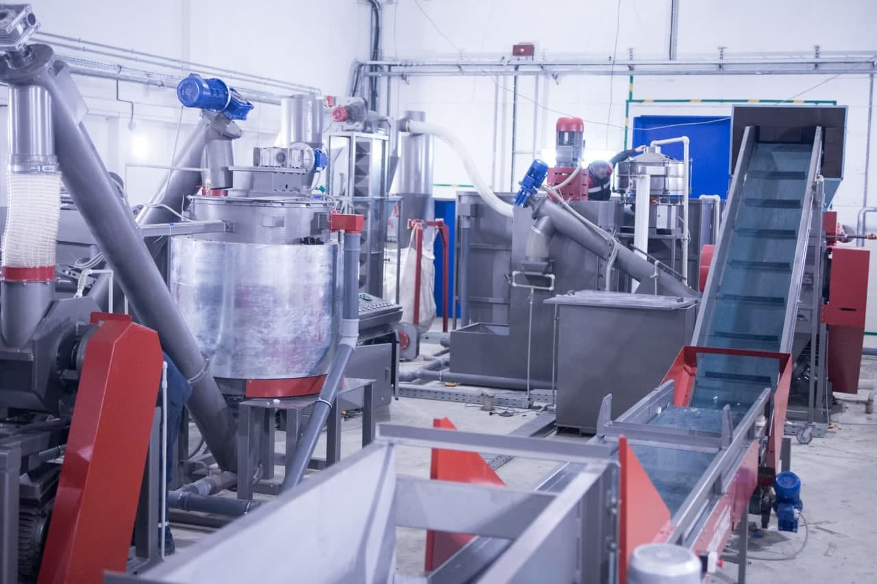 Предназначен для переработок сильнозагрязненных бутылок в хлопья с очень высокой степенью чистоты. Линия разработана специально для работы в российских условиях (сильная степень загрязнения ПЭТ-бутылок, неаккуратная сортировка, применение резинового клея при наклеивании этикеток и т.п.) Состав линии: