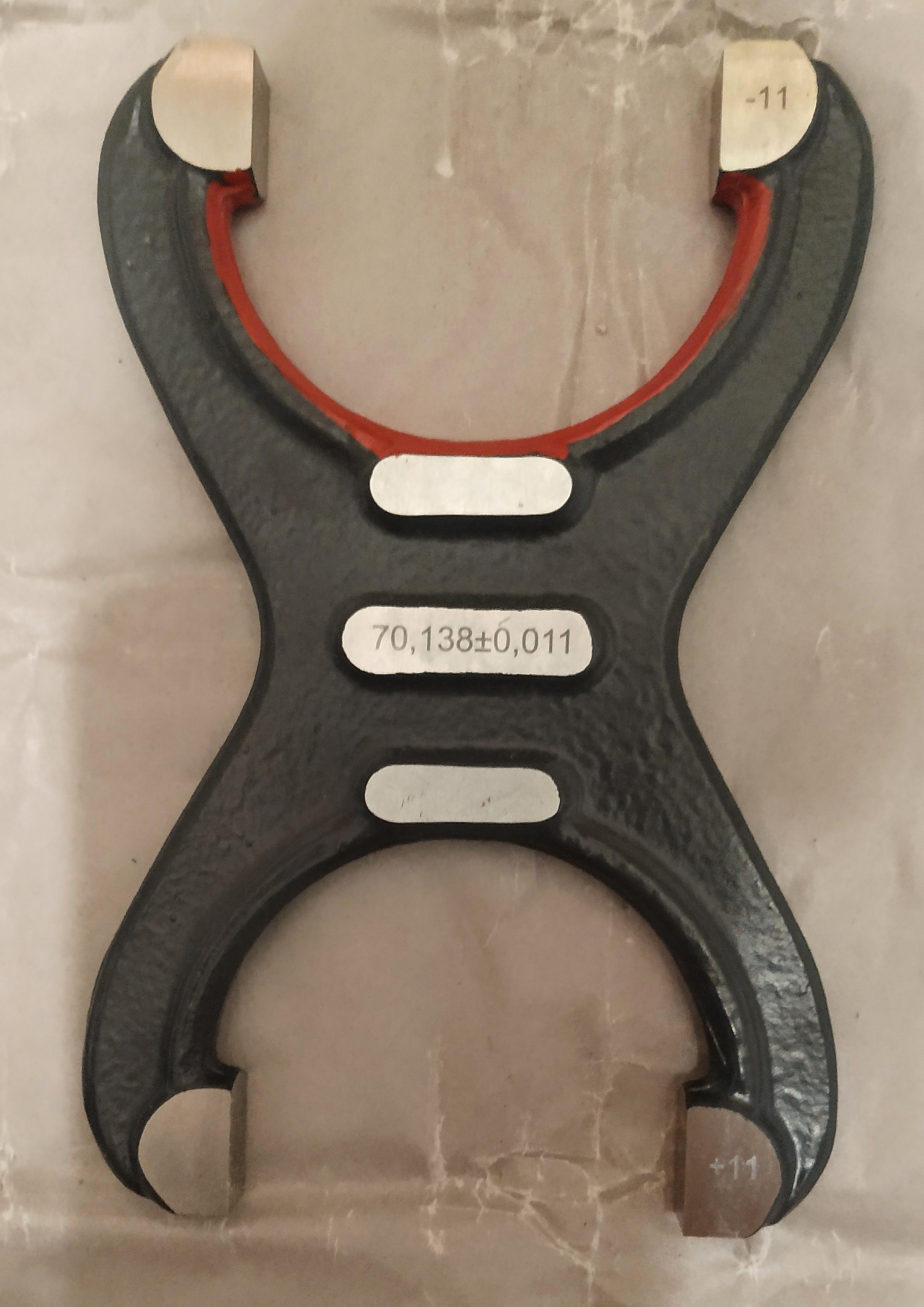 Калибр-скобы измерительные предельные из первоклассной эталонной стали закалённые, отпущенные , шлифованные и протёртые. Проходная сторона с припуском на износ по DIN7163 двухсторонняя с номинальным размером