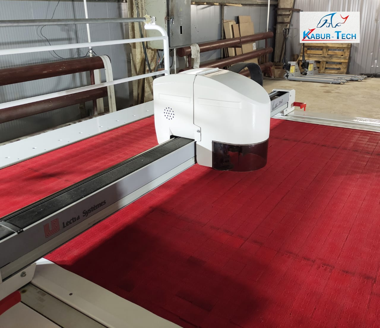 Автоматический раскройный комплекс для многослойного раскроя текстильных материалов Lectra. Возможность раскраивать материалы в сжатом виде до 25 мм толщиной настила, в зависимости от модели оборудования.
