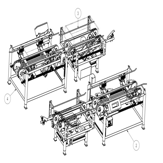 Каждому подающему соответствует взвешивающий конвейер для взвешивания полных или пустых ящиков с тензодатчиком и интерфейсом к главной панели управления. Система также включает весовой компьютер с программным обеспечением.