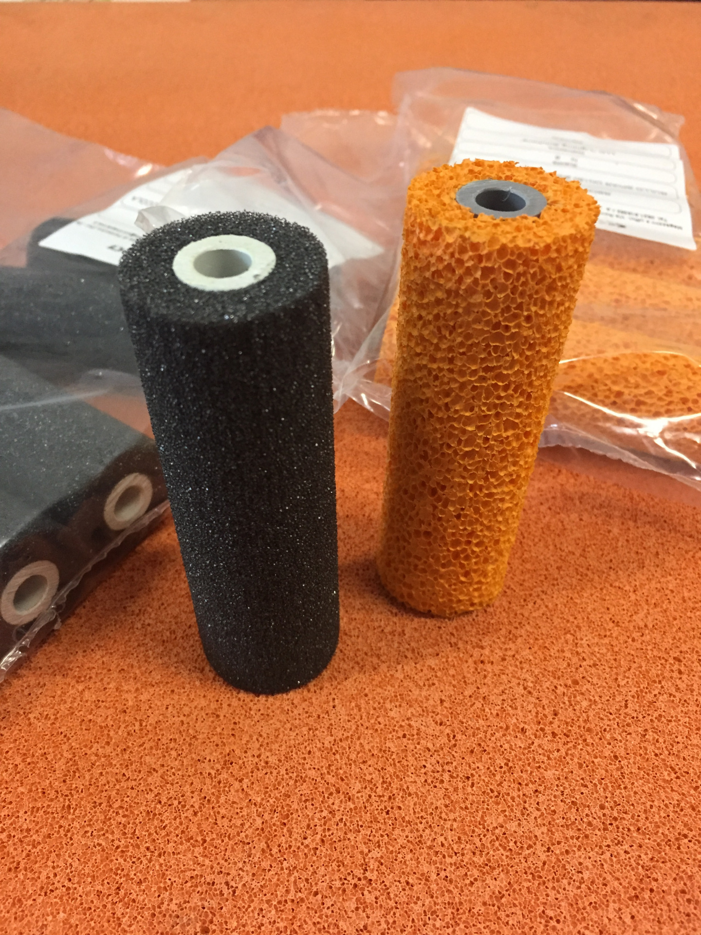 Предлагаем Вам прикатывающие ролики для этикетировочных систем. Ролики могут быть изготовлены по Вашим размерам из оранжевой пористой резины, из серого поролона, из силиконовой резины. Так же предлагаем листовую пористую резину и вулколлан.