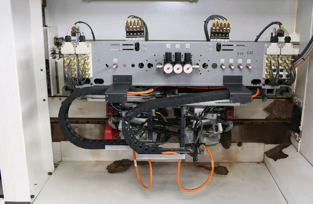для снятия переднего и заднего свесов кромочного материала Пневматический наклон на 0+25 град, для выполнения прямых резов и резов с фаской.