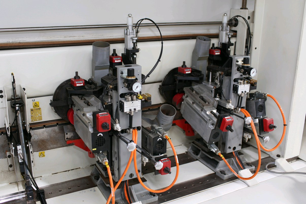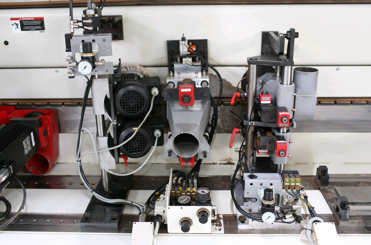для удаления остатков клея-расплава по краям верхней и нижней кромки детали, с копированием по высоте, с отдельным вытяжным патрубком, воздушной форсункой, с 1 верхней и 1 нижней режущей пластиной, ручное горизонтальное позиционирование.