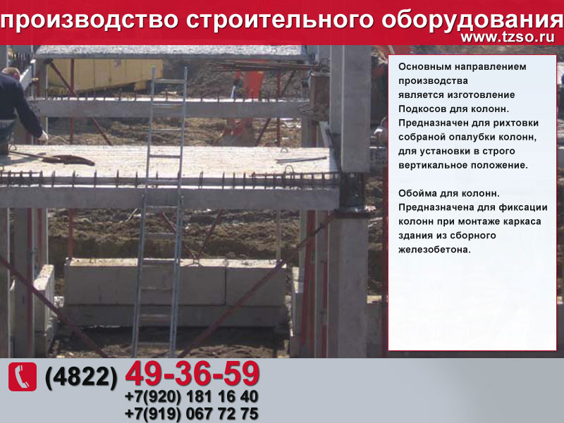 (подкосы, струбцины, захваты для плит перекрытия,площадки навесные и выносные, тара для раствора, рукава, лотки, воронка для бадьи, различное навесное грузозахватное оборудование.