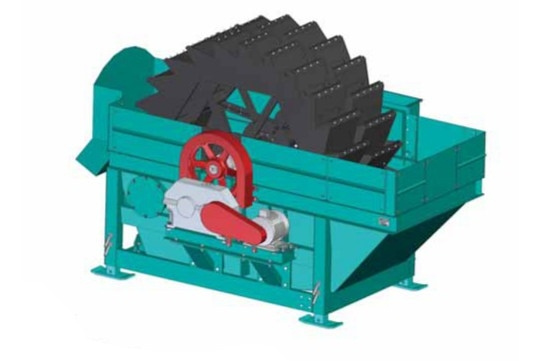 Пескомойка ПМГК-180-00 состоит из полуцилиндрического корпуса (бака-отстойник), в котором размещены грейферное колесо (или 2 грейферных колеса) и спираль (в пескомойках со спиралью). На колесе закреплены ковши с перфорированными пластинами.