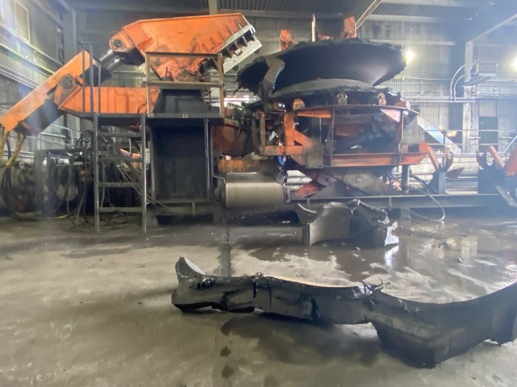 The installation is designed for cutting especially large tires into chips. The machine can cut any tires with bead ring diameters from 49ʹ to 63ʹ, outer diameter up to 4028 mm and profile width up to 1500 mm.