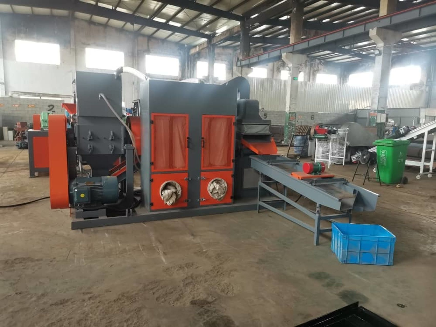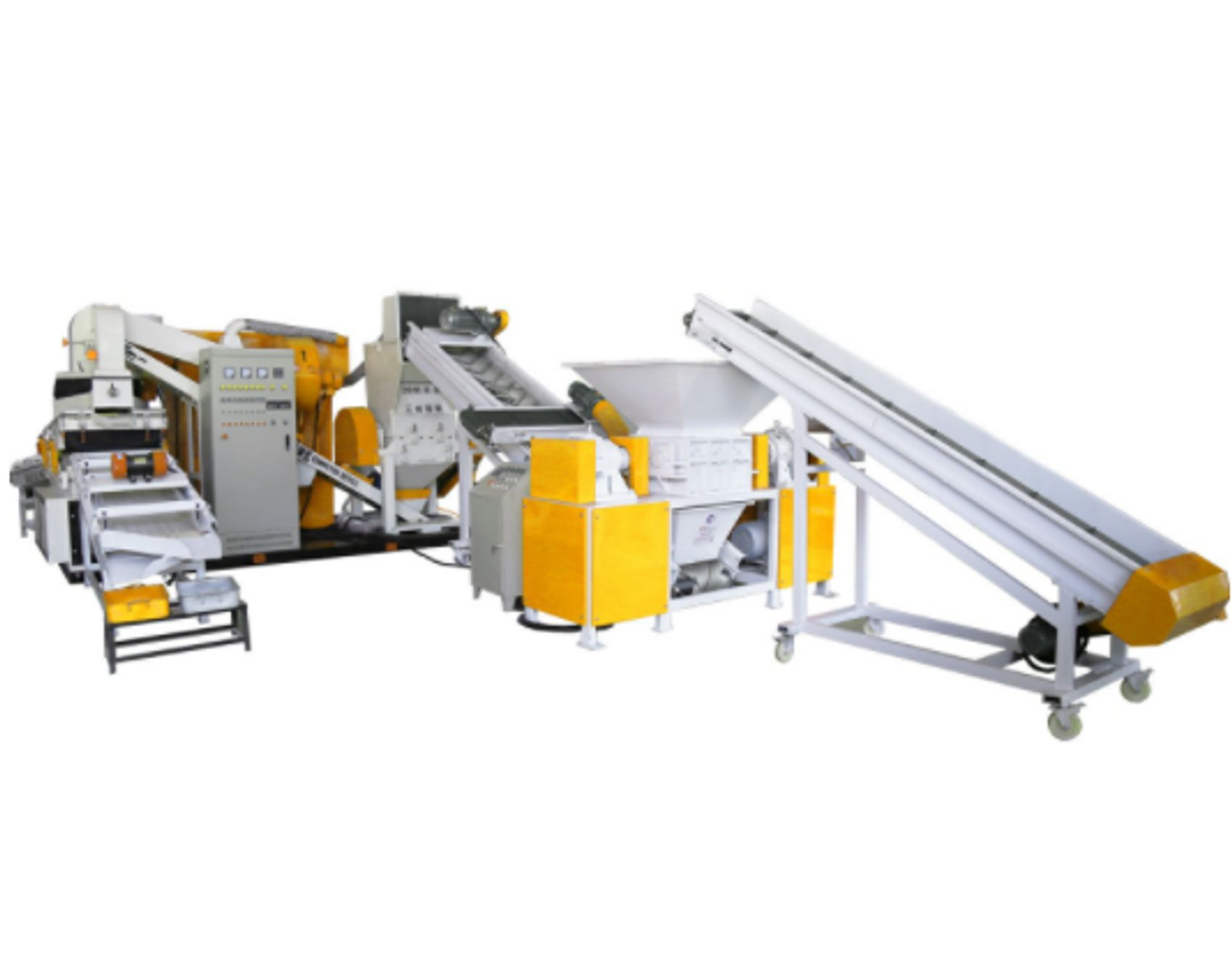 Установку для переработки кабеля MGS-800-01 можно назвать мини-заводом, который обрабатывает изделия из цветных металлов. В нее уже входит двухвальный пре-шредер, а также два загрузочных конвейера и магнитный сепаратор для отделения черных металлов. Это минимизирует время для подготовки сырья и на практике процесс сортировки исключается. Кроме пре-шредера, в данную линию интегрируется дробилка с повышенной производительностью 37квт. Это дает возможность обрабатывать не только кабеля большого сечения, но и изделия из цветных металлов, производительность 500-800кг/ч. Установка отлично подходит для предприятий по ломопереработке, в которых месячный оборот кабеля не превышает 150 тонн.
