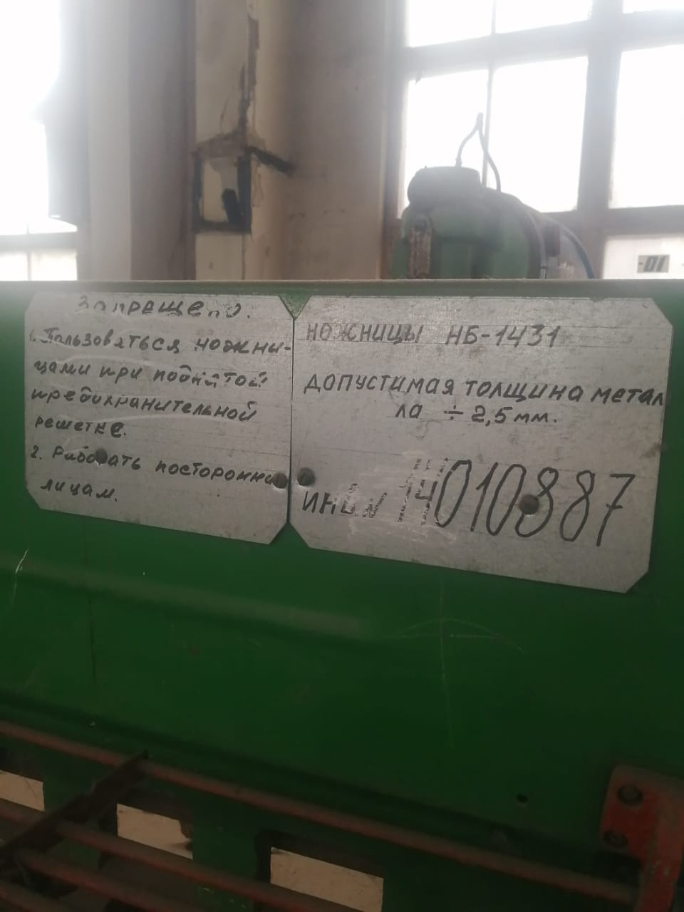Состояние: Б/У Год выпуска: 1998 Производитель: Гильотина(гильотинные ножницы) нд3314Г (1600х2.5мм) (Россия)