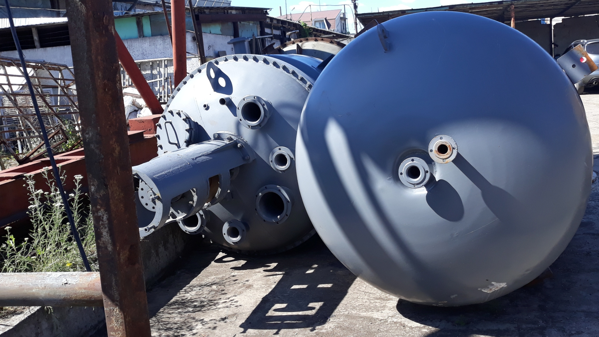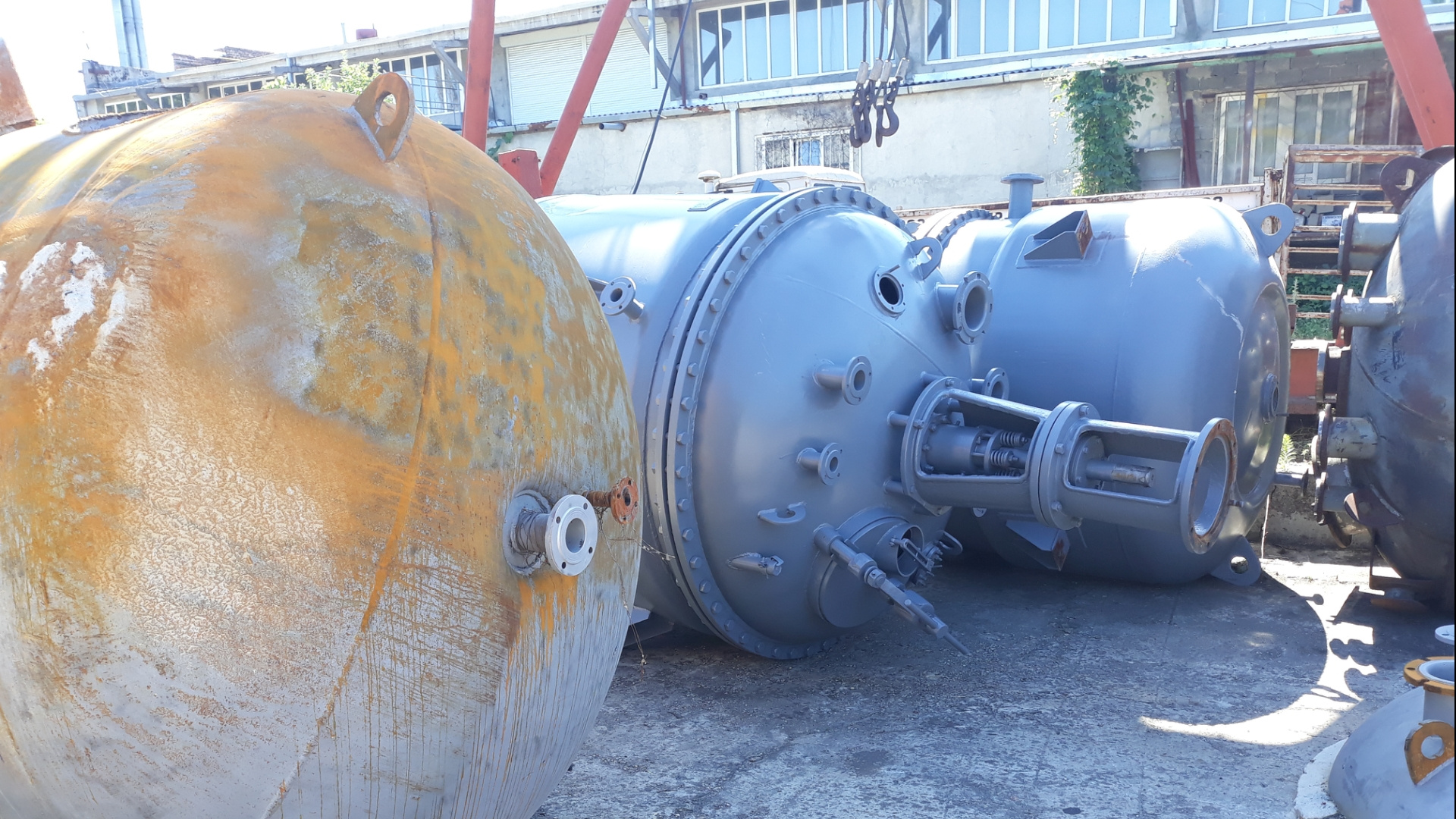Реактор из нержавеющей стали объемом 3,2 куба, с рамной мешалкой и с паровой рубашкой. Всегда в наличии реактора новые ( с хранения ) и б/у разных объемов и модификаций, сталь-эмаль, нержавейка и биметалл, реактора укомплектованы с мотор редукторами, мешалками и с паровыми рубашками. Все оборудование после полной ревизии и с паспортами, доставка по всей территории Украины.