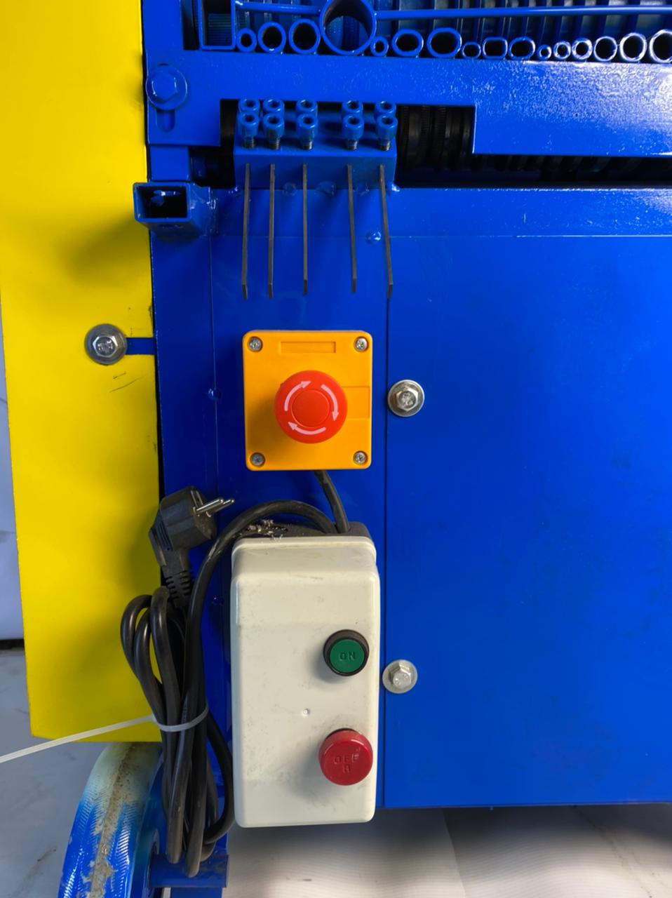 Станок для разделки кабеля R-045 предназначен для разборки кабеля диаметром от 1 до 45мм. Четыре вала в конструкции этого станка, работающие парами, позволяют прорезать кабель с двух сторон и на выходе вы получаете чистый материал. На станке имеется 23 взаимозаменяемых ножа и 21 отверстие для подачи кабеля из которых 5 отверстий оборудованы под дополнительные плоские ножи (фото 9), данные ножи позволяют разбирать мягкие кабеля с которыми не справляются дисковые ножи. В трех отверстиях имеются сдвоенные ножи. Благодаря им проще разбирать трансформаторную шину шириной до 11мм Глубина реза регулируется про поможи четырех регулировочных винтов расположенных на верхней части станка. Наличие колёс и ручек позволяют при необходимости оперативно перемещать станок одному оператору. Отличие данного станка от станка R-035 является более расширенный диапазон по диаметру кабеля, по количеству отверстий и ножей.
