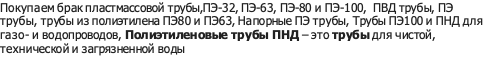 Покупаем брак пластмассовой трубы,ПЭ-32, ПЭ-63, ПЭ-80 и ПЭ-100, ПВД трубы, ПЭ трубы, трубы из полиэтилена ПЭ80 и ПЭ63, Напорные ПЭ трубы, Трубы ПЭ100 и ПНД для газо- и водопроводов, Полиэтиленовые трубы ПНД – это трубы для чистой, технической и загрязненной воды