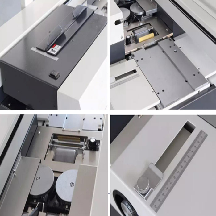 Обложка укладывается на платформу с регулировкой формы корешка, справа на рабочем столе. Позиционирование точное, так как предусмотрено два упора со стороны наезда платформы с бумагой и один боковой упор. Пачка бумаги, толщиной не более 6 см, укладывается вертикально в пресс, где фиксируется боковыми тисками. После этого оператор запускает операцию, и платформа с прессом протягивает корешок через исполнительные инструменты по длине рабочего стола. Первоочередно корешок подрезается фрезой с дополнительными высокопрочными торширующими лезвиями, над которой действует первая пара защитно-позиционирующих роликов; мусор снимает поперечная щетка. Далее выполняется нанесение клея по бокам переплета; сверху установлена вторая пара таких же роликов. Основное нанесение клея по торцу переплета делается главным валом с рельефной поверхностью; излишки клея снимает поперечная планка. Когда стопка заводится над обложкой, та приподнимается и удерживается серединой к корешку, при этом боковые фиксаторы на платформе обложки смыкаются, прижимая так бумагу по боковой длине.