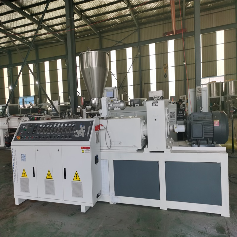 Линия по производству экструзионных профилей из ПВХ оснащена коническим двухшнековым экструдером SJZ66 / 132, который специально используется для экструзии, пластификации и формования порошкового ПВХ-сырья. Он отличается высокой производительностью, хорошим пластифицирующим эффектом и низким энергопотреблением. Конический двухшнековый винт используется для вращения наружу в противоположных направлениях, и в сочетании с количественным подающим шнеком для управления скоростью подачи может быть достигнут эффект равномерной экструзии сырья.