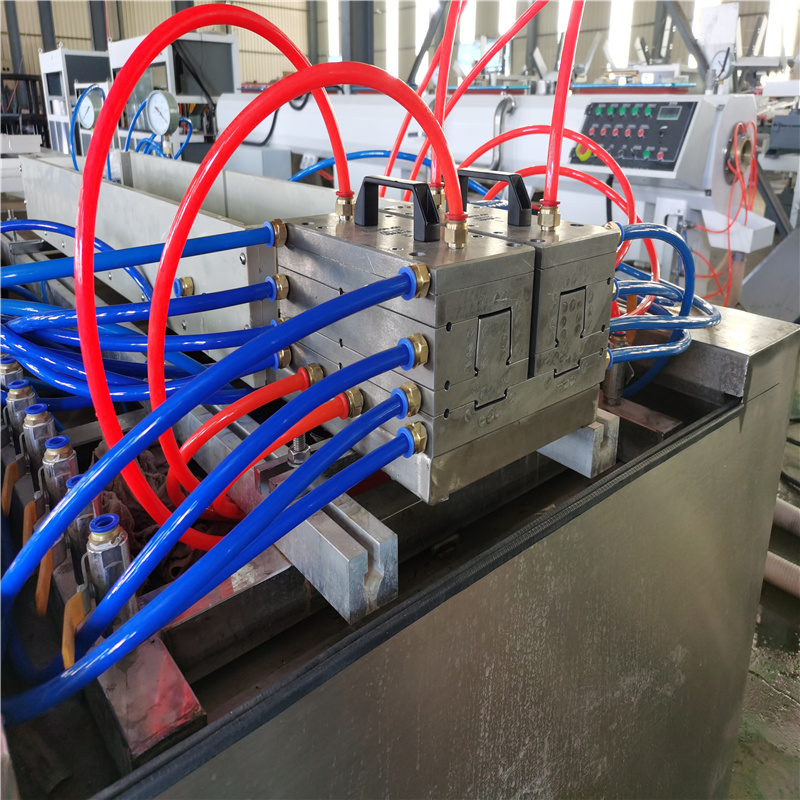 Для придания формы и охлаждения профиля используется система вакуумного формования и циркуляционного водяного охлаждения.Вакуумная труба и соединение трубы охлаждающей воды соединены медными токоведущими соединениями. Обеспечивая степень вакуума, можно обеспечить охлаждающий эффект.