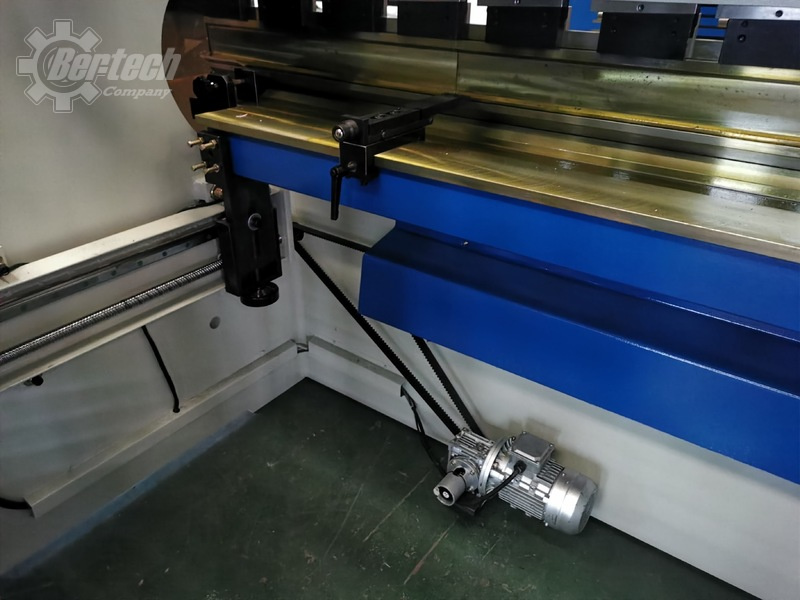 Листогибочный пресс имеет синхронизацию осей Y1 Y2 через торсионый вал с муфтой. Есть регулировка хода заднего упора и гибочной балки, настройка положения пальцевых блоков упора и цифровое отображение на экране ЧПУ его расположения. Простая и надёжная система ЧПУ CTouch 6 (сенсорный) имеет возможность задавать программы с последовательностью гибки. Управление ходом по осям Y и X контролируются от ЧПУ. Ось R (ход пальцевых блоков по вертикальной оси) – перемещается вручную. Возможна точная подстройка положения заднего упора. Станина сварена из конструкционной стали марки Q235 и включает в себя следующие основные элементы: боковые стойки, рабочий стол,верхняя балка, опоры.