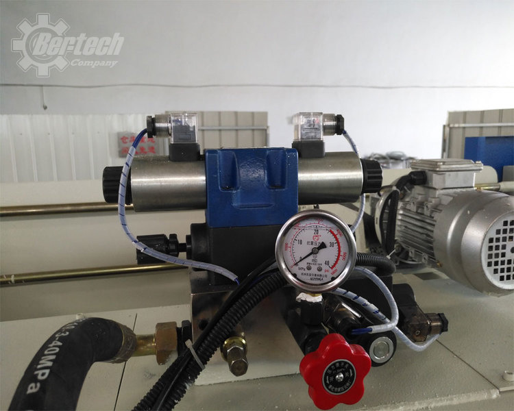 На листогибочном прессе для синхронизирования перемещения гидроцилиндров используется торсион с размыкаемой муфтой, обеспечивающей легкую корректировку параллельности верхней балки и рабочего стола. Верхний инструмент имеет механизм корректировки угла при отклонении с помощью специальных клиновидных вкладок.