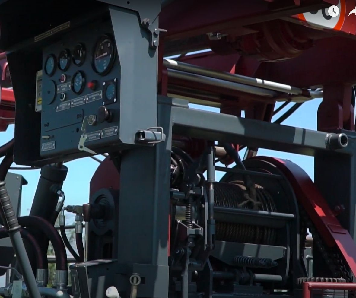 Подвижный вращатель с механическим приводом в сочетании с мощным гидравлическим механизмом подачи позволяют создавать значительную осевую нагрузку на породоразрушающий инструмент с первых метров бурения. Конструкция вращателя обеспечивает возможность его отвода в сторону от оси скважины для выполнения спуско-подъемных операций, установки обсадных колонн и реализации технологии ударно-канатного бурения с использованием буровой лебедки. Органы управления ПБУ-2 расположены у основания мачты на раме установки. Для удобства управления установка комплектуется съемной площадкой оператора бурения. Предусмотрены гидравлические домкраты. .