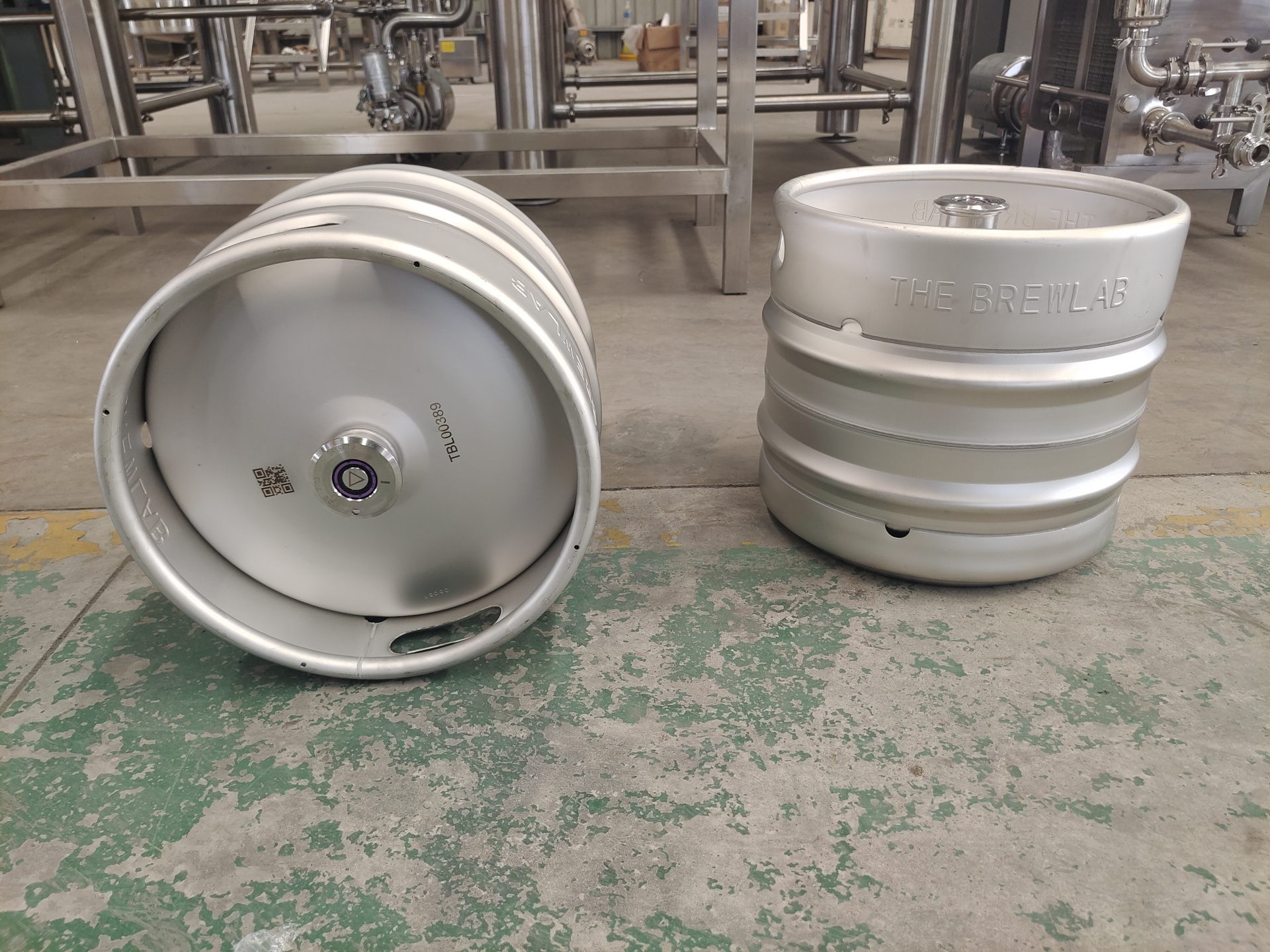 Kegs with key information like brewery name, serial number and contact details.