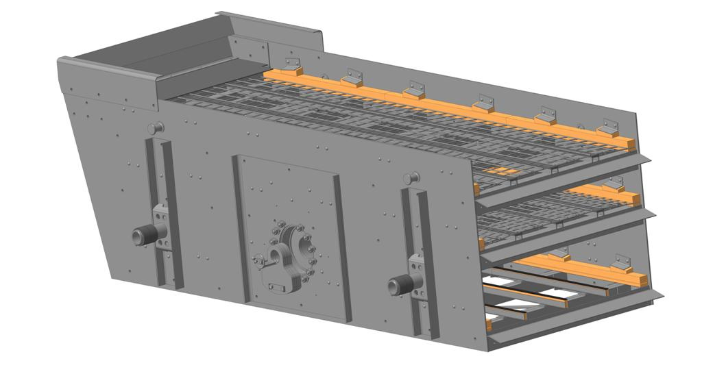 Грохот инерционный ГИС-43 (средний) предназначен для разделения по крупности (грохочения) нерудных сыпучих материалов (щебня, гравия, песка и др.) насыпной плотностью до 1,8 т/м3 при сухом грохочении с поверхностной влажностью до (4…5) % и температурой до +50°С.Размерпросеивающей поверхности 1520х4000мм. Количество ярусов сит 3. Размеры ячеек сит 5…70мм. Производительность 150м3/час. Производительность зависит от просеиваемого от материала, его размеров, степени влажности, наличия в нем вяжущих компонентов и т.д. Электродвигатель 11 кВт. Габаритные размеры колеблющейся части грохота 4645×2170×1400 мм. Масса 4,6 т. Крупность (размер) куска питания не более 150мм.