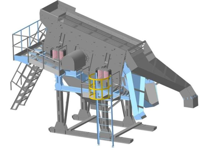 Агрегат сортировки с грохотом ГИС-33 предназначен для разделения по крупности (грохочения) сыпучих материалов (щебня, гравия, песка и др.). Состоит из агрегата грохота (рамы - металлоконструкции, опорного основания) и установленным на нем грохотом ГИС-33. Размер просеивающей поверхности инерционного грохота 1250х3500 мм. Количество ярусов сит 3. Производительность до 60 м3/час, зависит от просеиваемого материала, его формы, размеров, влажности и т.д. Электродвигатель 11 кВт. Габаритные размеры 8080х4170х4855 мм. Высота загрузки 4855 мм. Масса (с грохотом) 6,9 т. Крупность (размер) куска питания не более 100мм.