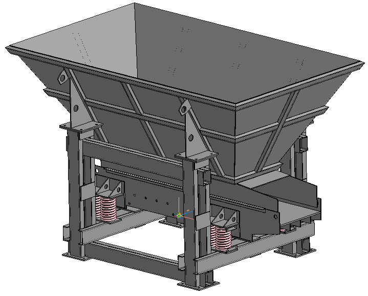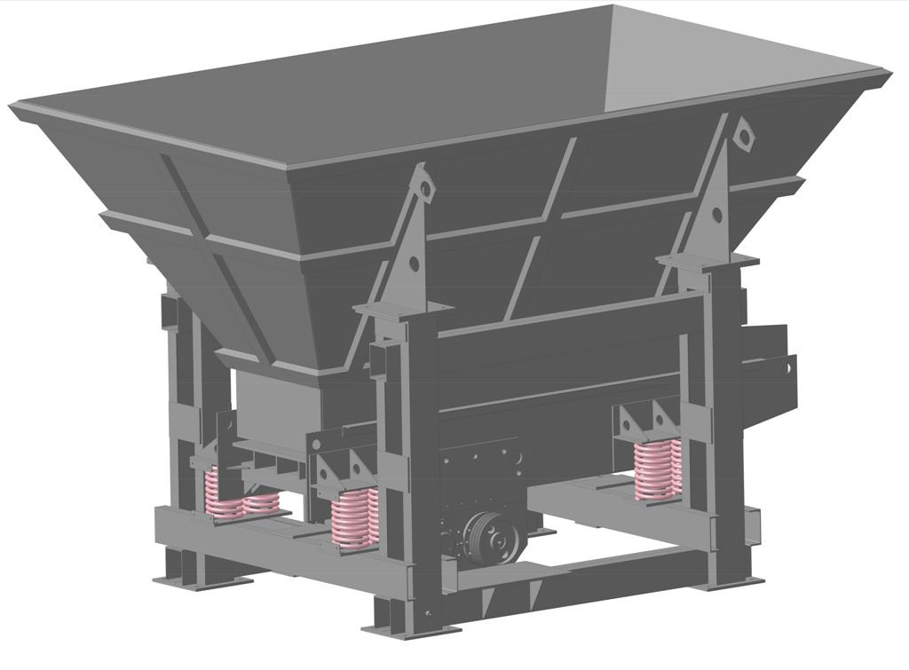 лей), на которой установлены бункер, подвижная тележка (лоток) с роликовой опорой и привод с кривошипно-шатунным механизмом. Подача материала в зону выгрузки осуществляется за счет возвратно-поступательного движения тележки (лотка) относительно неподвижного бункера.