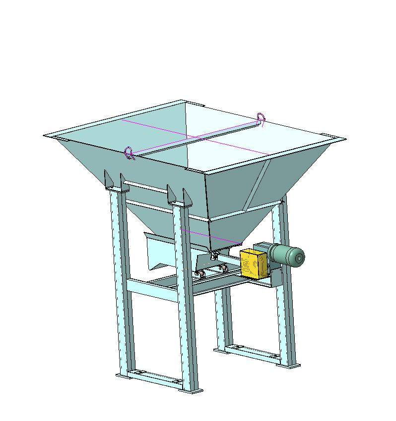 Питатель лотковый ПЛ-24 состоит из рамы (сварная несущая конструкция, состоящая из стандартных профилей), на которой установлены бункер, подвижная тележка (лоток) с роликовой опорой и привод с кривошипно-шатунным механизмом. Подача материала в зону выгрузки осуществляется за счет возвратно-поступательного движения тележки (лотка) относительно неподвижного бункера.