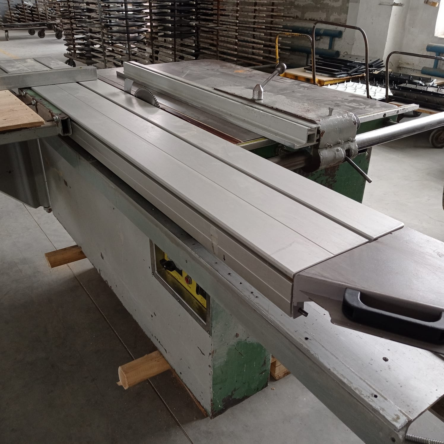 Рабочее напряжение (В) 380 Длина реза (мм) 2100 Диаметр главного диска (мм) 300 Диаметр подрезного диска (мм) 120 MAX высота реза (мм) 92 длина реза 2100 мм обороты главной пилы 4200 об/мин диаметр главной пилы 300/30 мм мощность 4.5 кВт, 380 В макс высота реза 92 мм. Станок в хорошем состоянии с интегрированной кареткой итальянского производства (каретка куплена в фирме МДМ-Техно)