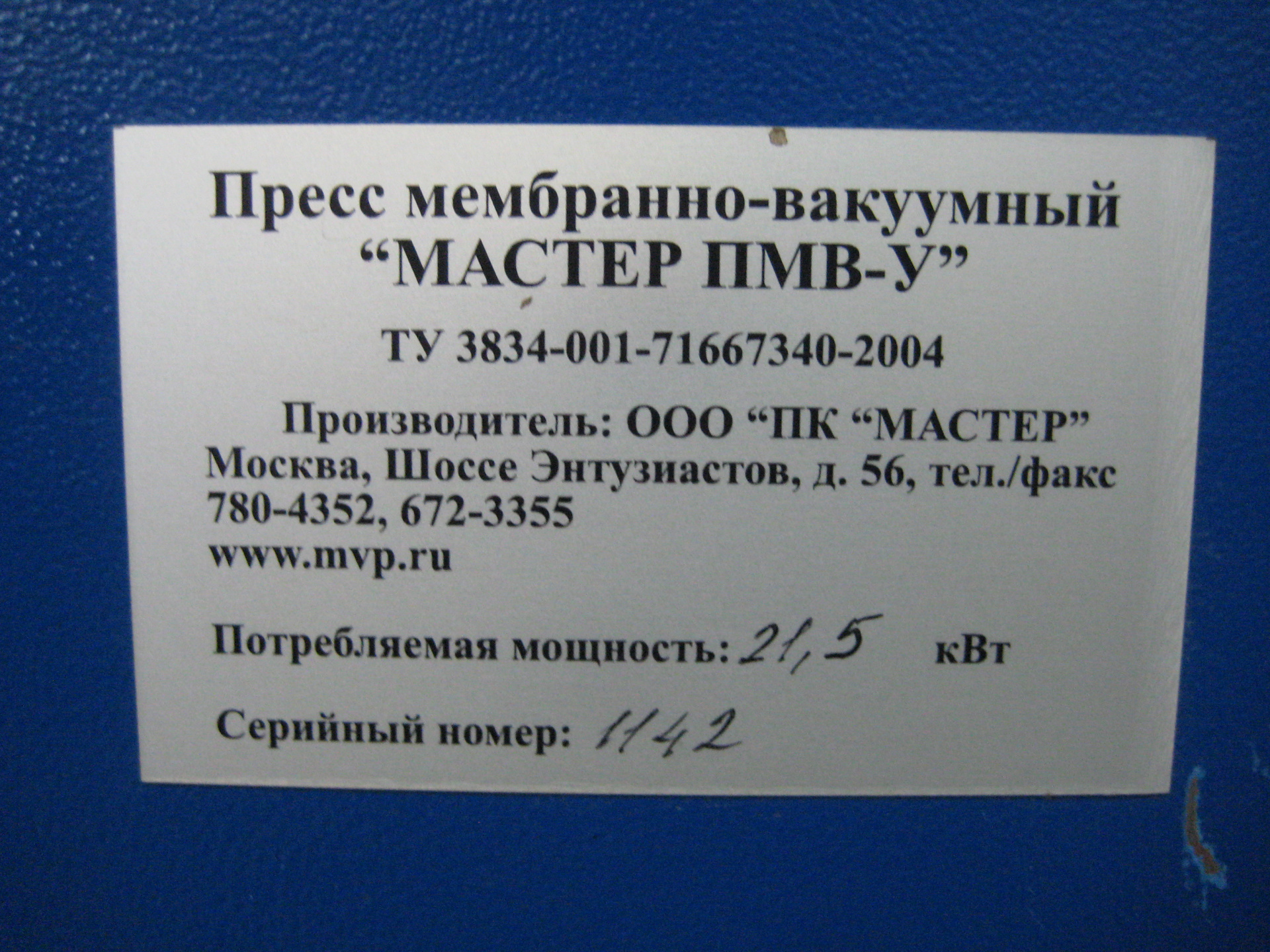 Пресс мембранно-вакуумный для вакуумирования фасадов "Мастер" ПМВ-У Б/У - Продам в Костроме