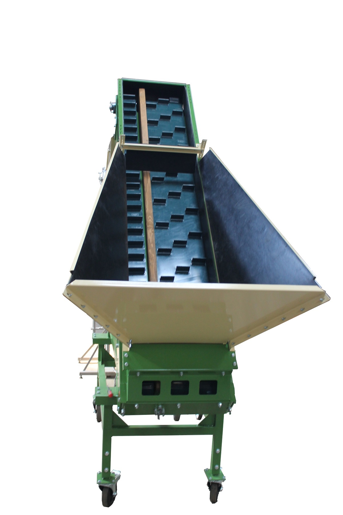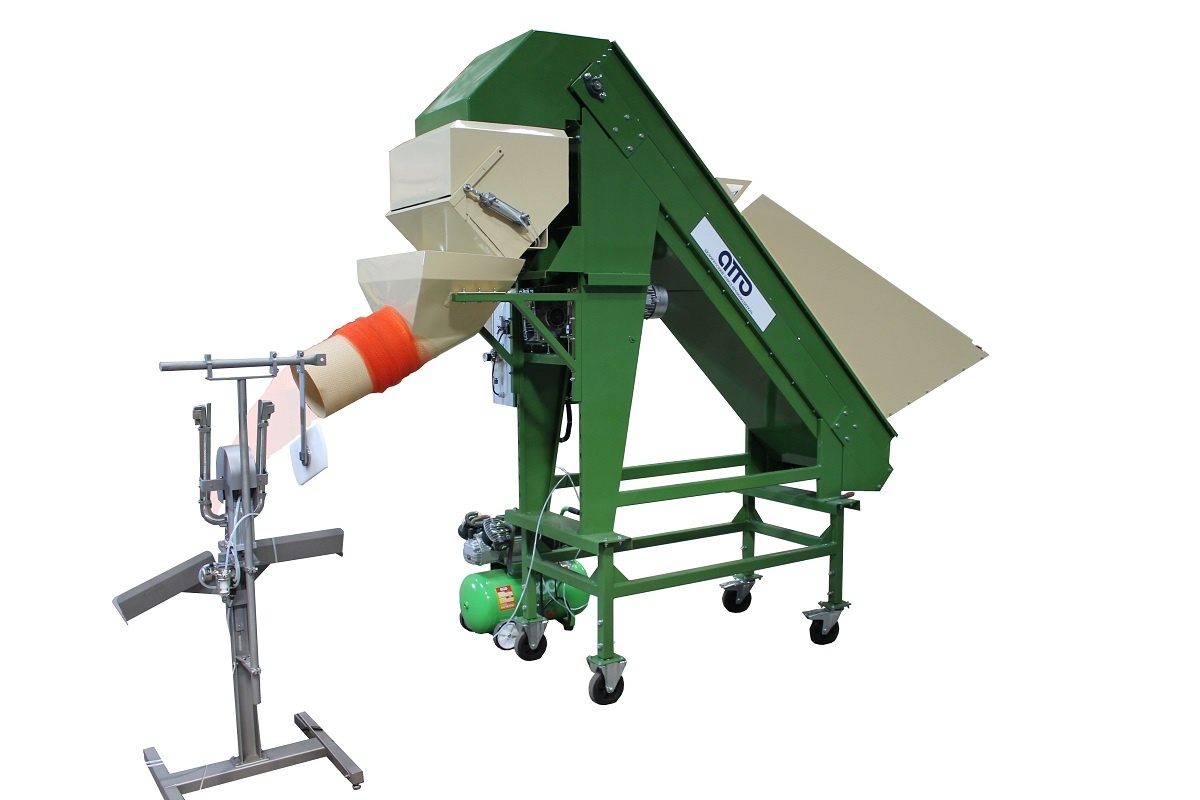 оборудование машина для фасовки упаковки картофеля и овощей УД-5 (с клипсатором для автоматической работы, без клипсатора для полуавтоматической работы) - предназначена для взвешивания и расфасовки овощей, картофеля, лука, моркови, редиски, свеклы в сетку чулок (клипсатор), готовые сетчатые, мешки, пакеты Взвешивающий бункер загружается овощами с помощью ленточного транспортера с лотками. Взвешивание обеспечивается высокоточным электронным определителем веса (тензодатчик). Величину веса устанавливает оператор (от 1 кг. до 50 кг.). Продукт высыпается в сетку чулок, готовые сетки, мешки, пакеты. Погрешность при взвешивании в 1 продукт. Фасовочная машина УД-5 дополнительно комплектуется клипсатором для более полной автоматизированной работы (упаковка от 1 кг. до 5 кг.). Фасовочная машина может использоваться для работы как в линии по переработке и предпродажной подготовки овощей, так и в автономном режиме (отдельной машиной).