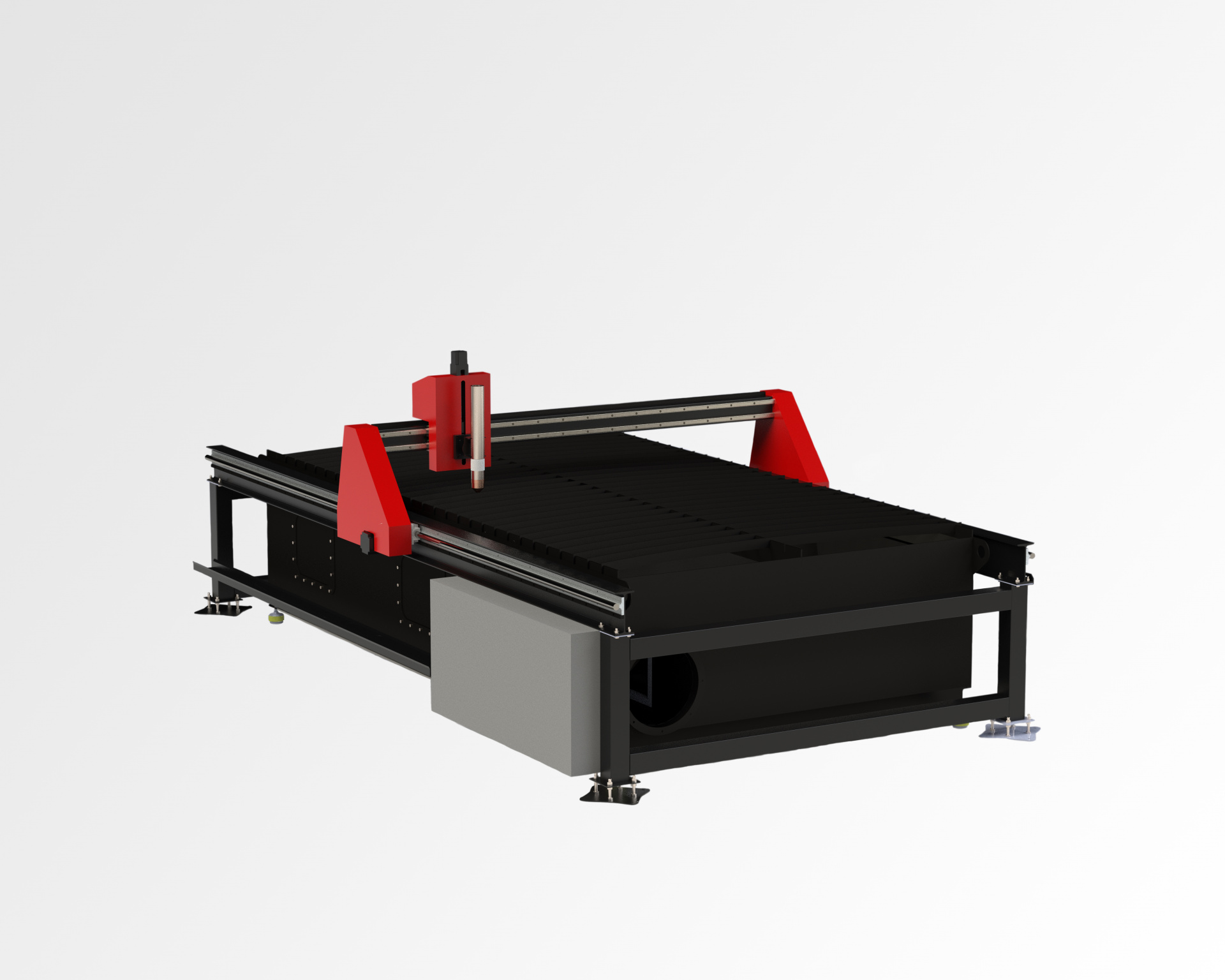 Самонесущая рама станка изготовлена совместно с раскройным столом, предполагает использование станка для резки небольших толщин металла (до 20мм). Для резки больших толщин металла, при помощи плазменной резки до 32мм, газовой резки до 80мм, необходимо использование станка с раздельным раскройным столом.