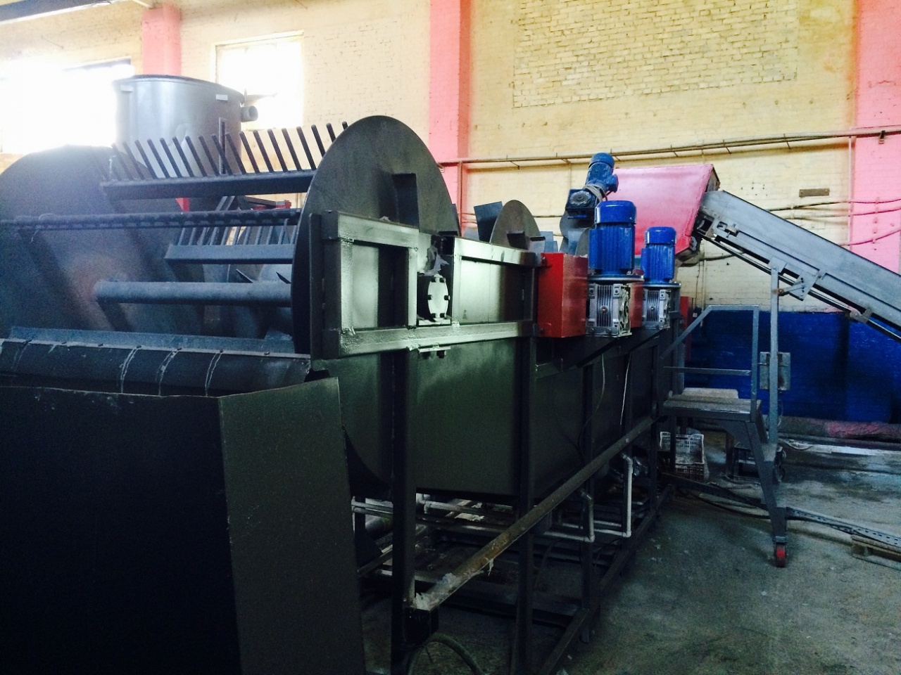 ленточный загрузчик, дробилка 55 кВт ласточкин хвост, ванна флотации 5 барабанов, шнековая загрузка в центрифугу 55 кВт, вентилятор и накопитель 1,5 куба. В наличии покажу в работе